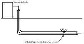 Reflexión de Corriente de Impulso.- Este método requiere del uso de un acoplador de impulso (acoplador lineal), un generador de impulso y un analizador. El analizador hace el trabajo de un osciloscopio con memoria que captura y muestra reflexiones desde la falla, producidas por el pulso de lata tensión del generador de impulso. El analizador opera en forma pasiva como un registrador de impulsos. El empleo de impulsos de alta energía es especialmente efectivo en la localización de fallas en tramos muy largos y en cables con fallas difíciles de ionizar que no se evidencian en forma efectiva utilizando la reflexión de arco.